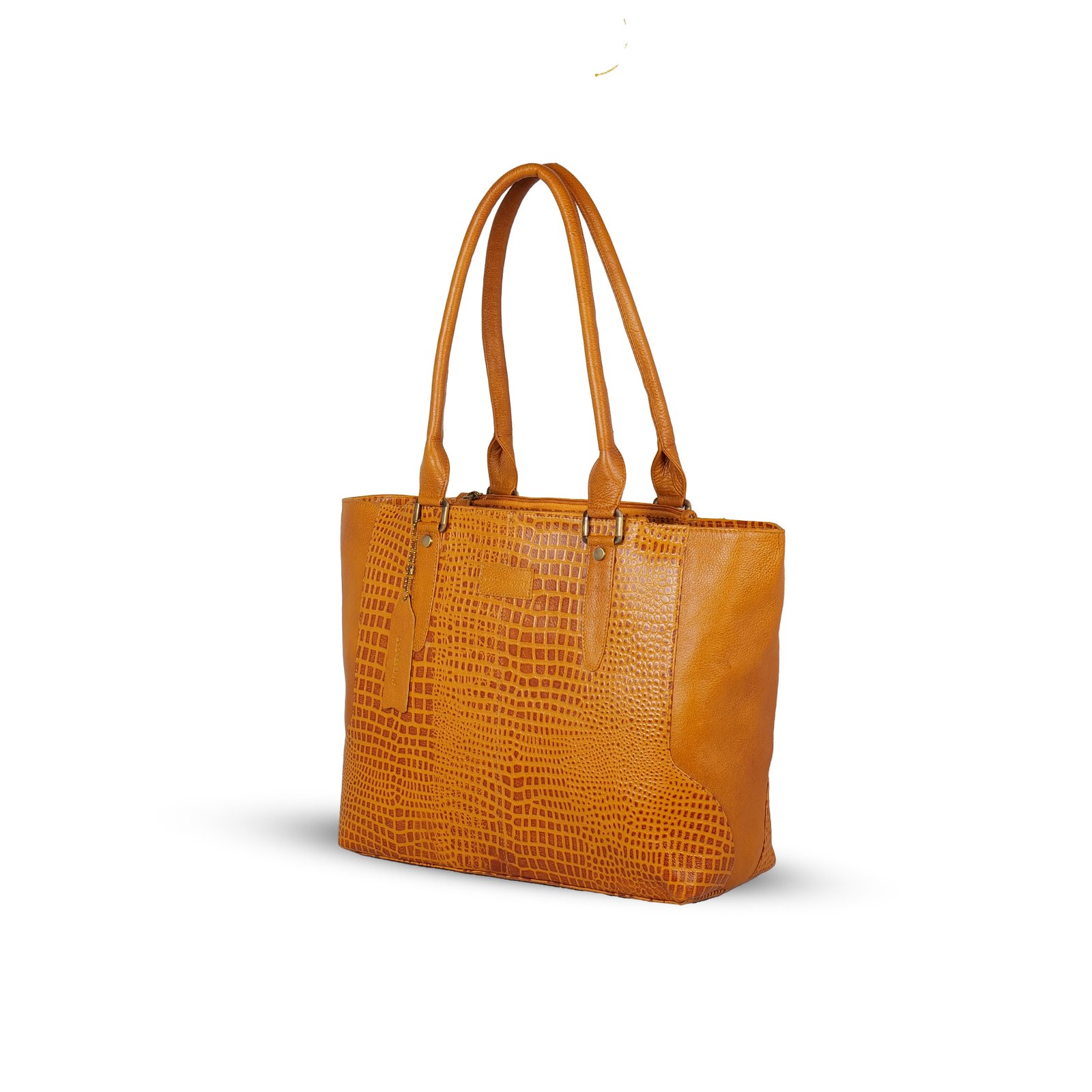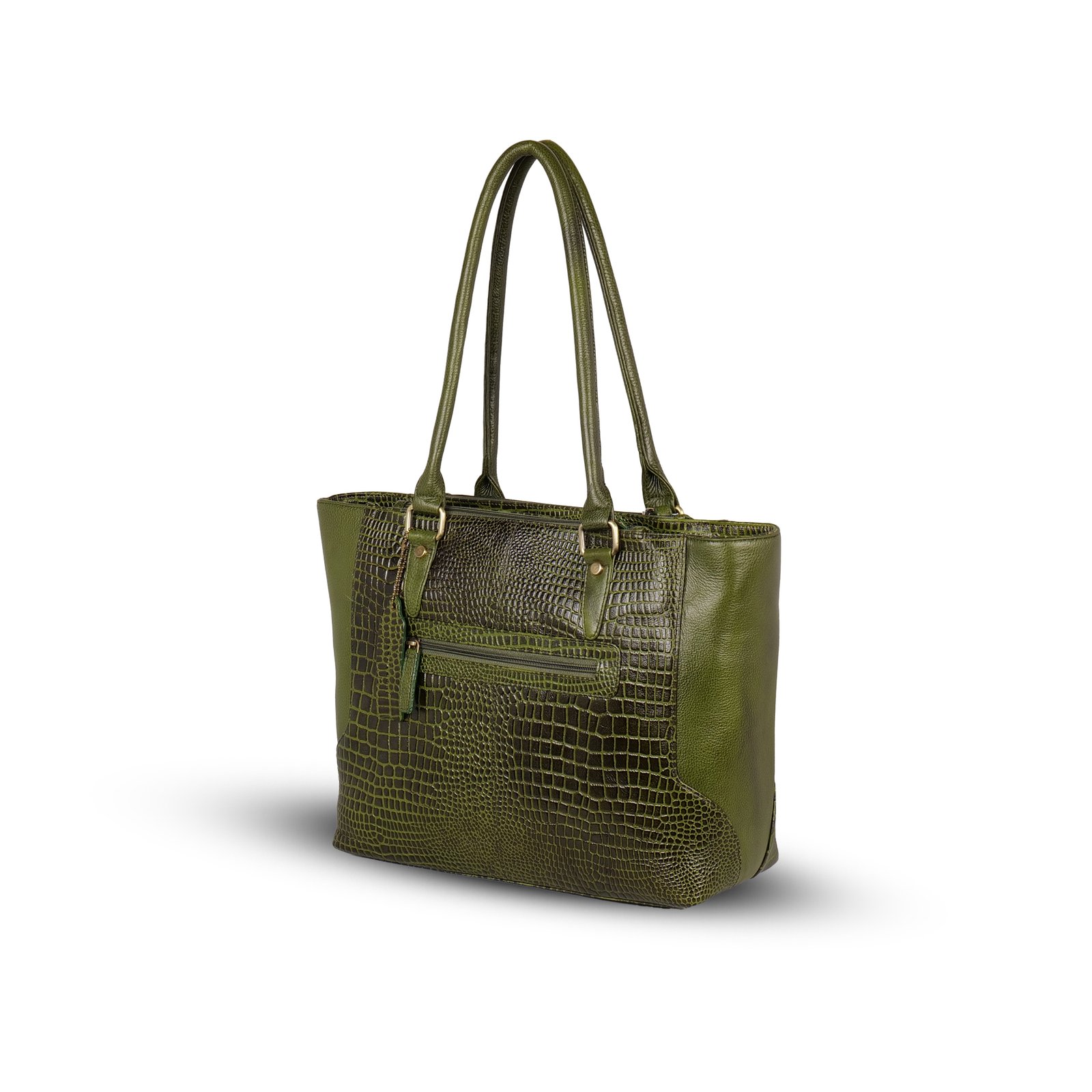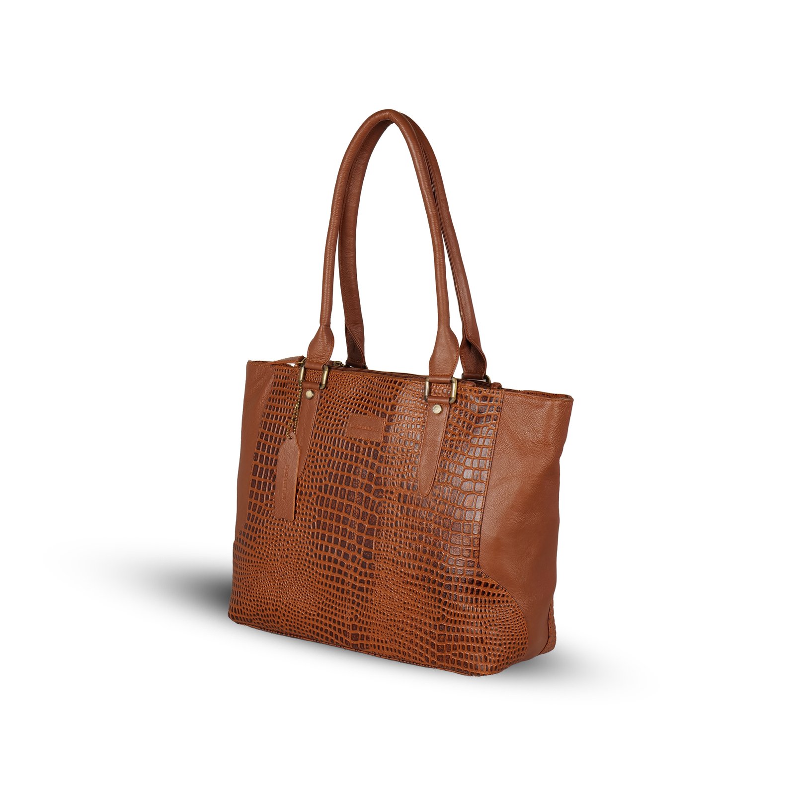 A striking croc-embossed leather tote that merges bold texture with everyday practicality—perfect for turning heads while staying effortlessly organized.
