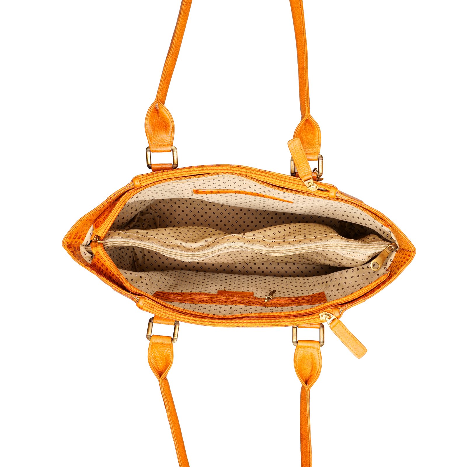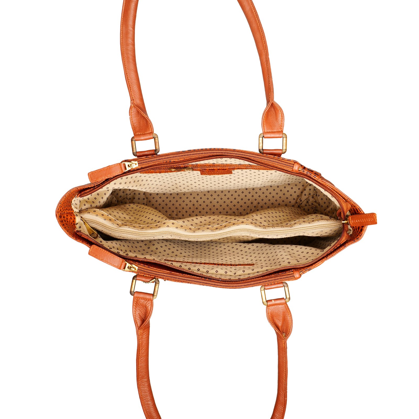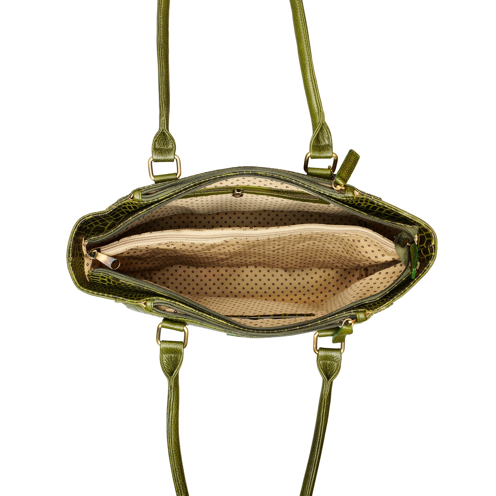 A striking croc-embossed leather tote that merges bold texture with everyday practicality—perfect for turning heads while staying effortlessly organized.