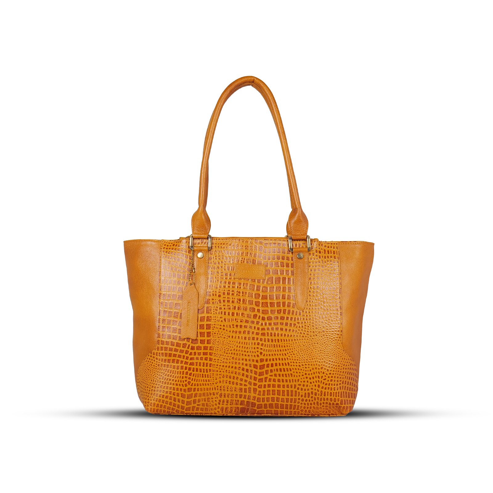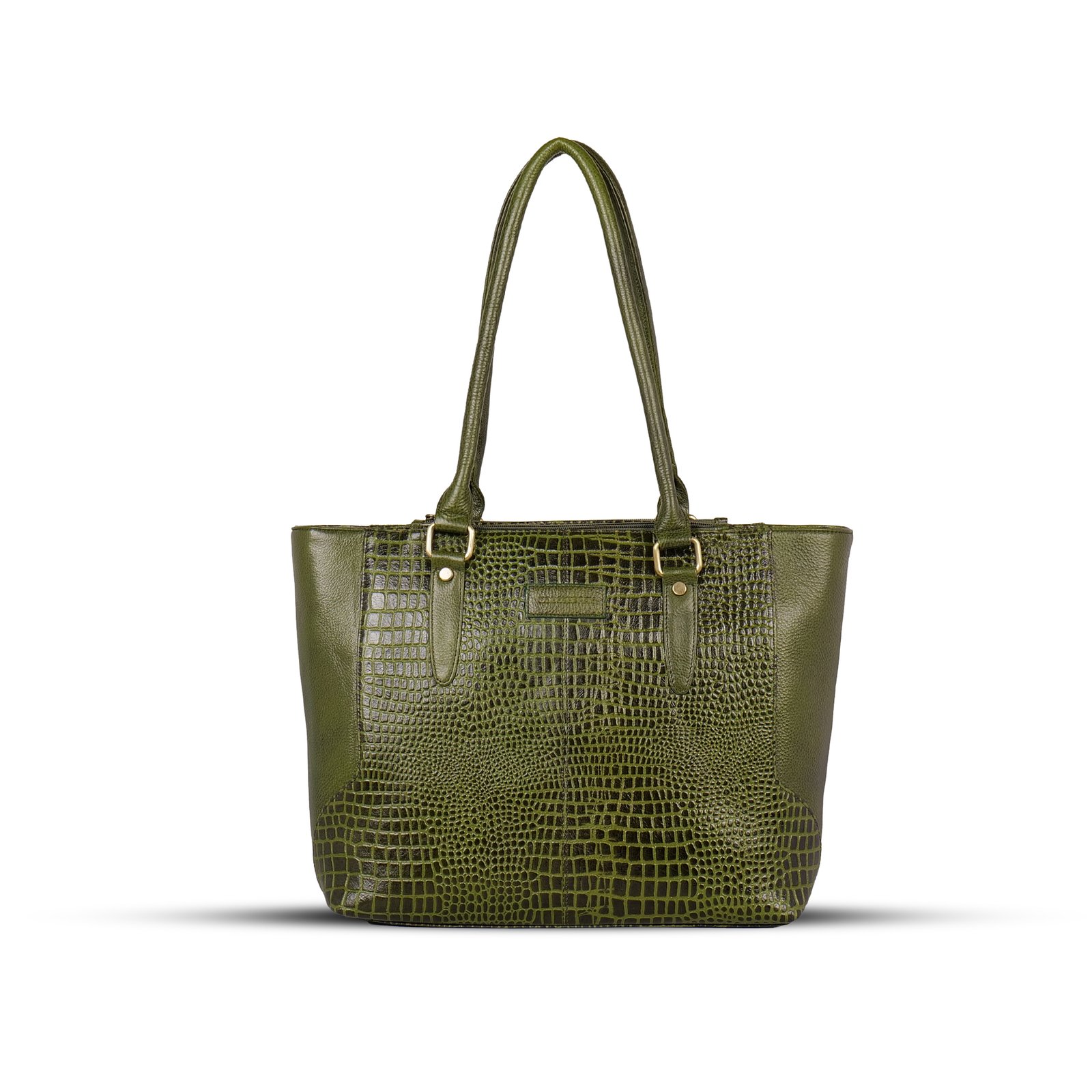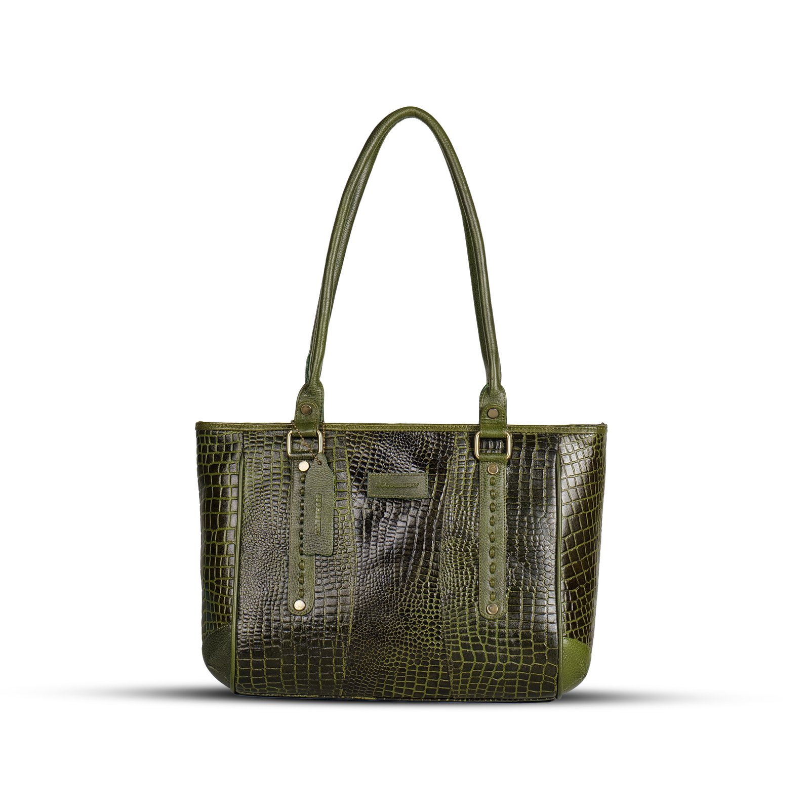 Make a confident statement with the Gooseberry Croc-Embossed Leather Tote, a bag that blends artisanal craftsmanship with standout design. Featuring a richly textured crocodile-inspired pattern on genuine leather, this tote offers a bold, fashion-forward look while remaining versatile for daily use. The spacious interior provides ample room for your essentials, and the sturdy double handles ensure comfort and durability on the go. With premium detailing, secure compartments, and timeless structure, this handbag is your new favorite for both work and weekend adventures.